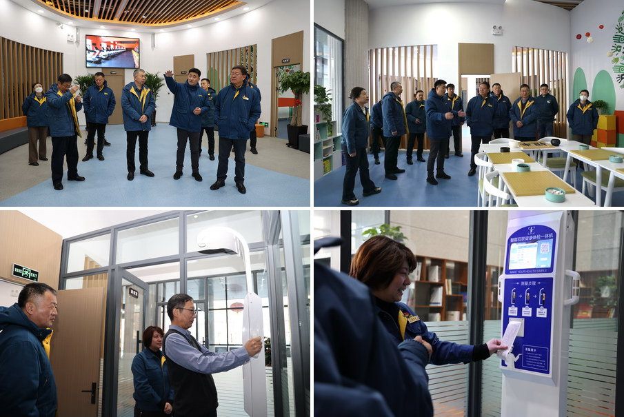 验收过程中,公司领导边走边看,听取工作人员的现场介绍,并详细询问了解职工健康服务中心的主要功能、服务对象、服务模式等。