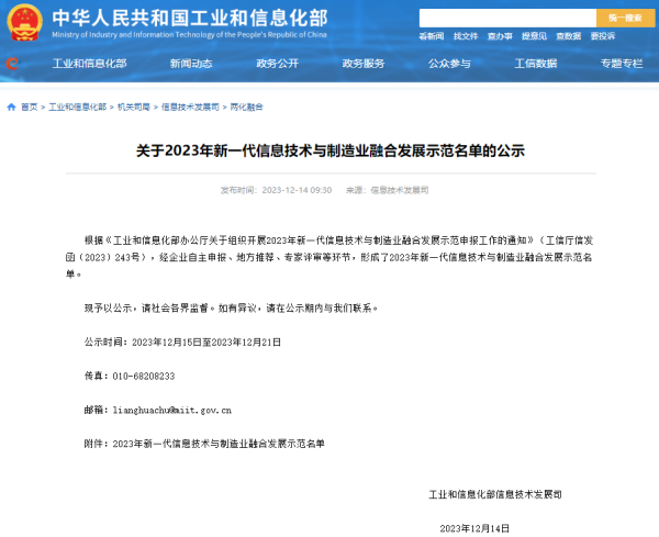 12月14日,国家工信部官网公布了《2023年新一代信息技术与制造业融合发展示范名单》,其中“数字领航”企业方向28个,Z6尊龙纸业成功入选,成为行业首家获得该荣誉奖项的企业。