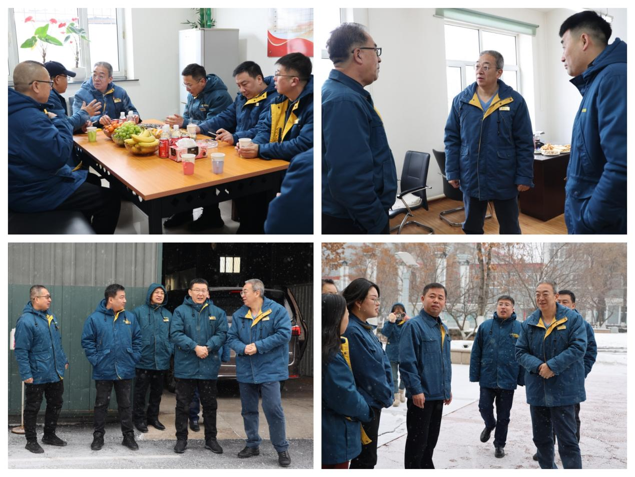 在热电、自动化分厂,公司领导驻足观看了热电员工们制作的冰雕作品、风采展示照片墙以及自动化员工们制作的迎新视频,领导们对员工们的才华和创造力表示高度赞赏,对新的一年充满了期待和信心。随后,公司领导又深入机修分厂、给排水分厂、仓储部、质检部,与员工们互致新春佳节的美好祝愿,并了解了各部门的班次安排、人员值守等具体情况,感谢他们全力为春节期间的生产保供提供坚实的服务支撑。